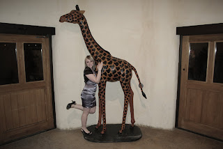Bryan's had a holiday party on saterday held at the Zoo. It was a nice change to dress up and go out. It was a long night, but it was nice to get out. They always have a chance to win the centre peices. They put a card under the seat at every table and whoever sits there gets the centre piece... and we won it. They also give you tickets when you come in for a chance to win door prizes. We won one of them and lucky us it was another centre peice.. so we have two and they're both red which doesnt match our house. But it's always nice winning something. Everyone always gets a $50.00 gift card so now we have a free $100.00 to spend.. i'm excited. As well this year they gave another present to all the woman, which was these super cool slinky necklaces.. they had gold, silver and a gold & silver one.. i picked silver and thought i'd find them and buy another. These necklaces are soo cool you can form them and shape them however.. tie them in a knot. I found out they are not from Canada so i'm a little sad. Here are a few pictures..
